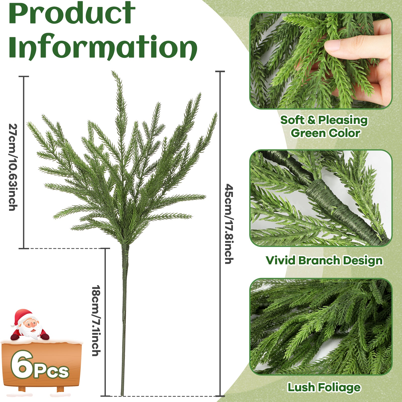 - Sufficient Quantity and Suitable Size : The pack includes 6 artificial real touch Norfolk pine stems which is suitable length of 18 in/45 cm, ideal for a variety of Christmas DIY craft projects, from wreaths to Xmas garlands. If you notice moisture due to sealed packaging, just dry them for 2-3 days for best results.