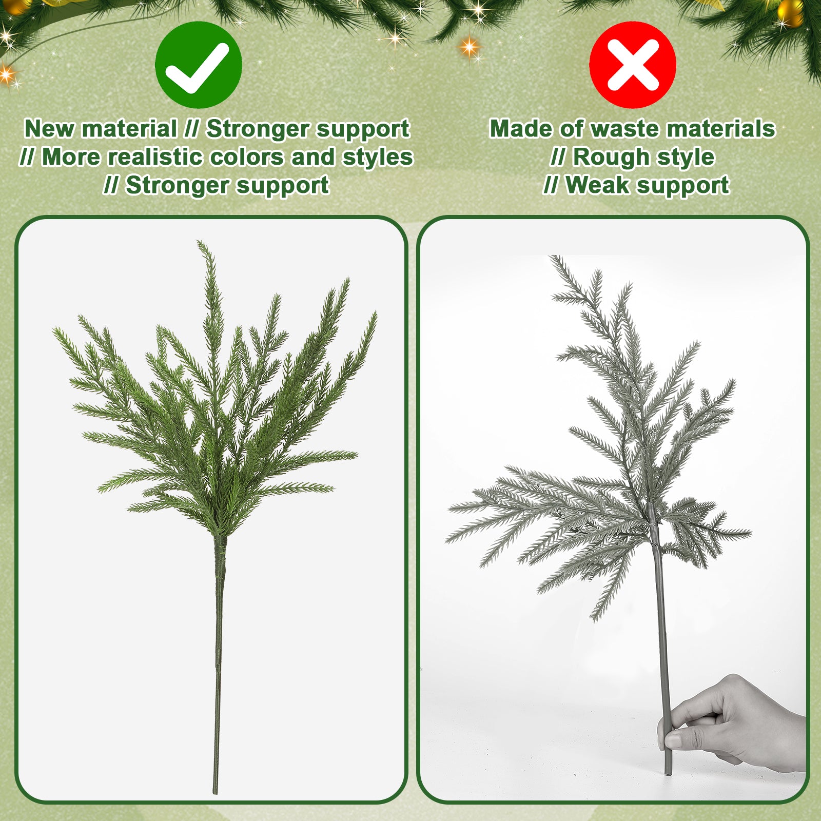 - Natural Real Touch: artificial faux Xmas branches are crafted from premium PE material, these Scented Christmas Norfolk pine picks not only offers aesthetic value but also ensures longevity and durability. Enjoy the beauty of natural green that mimics real pine branches.