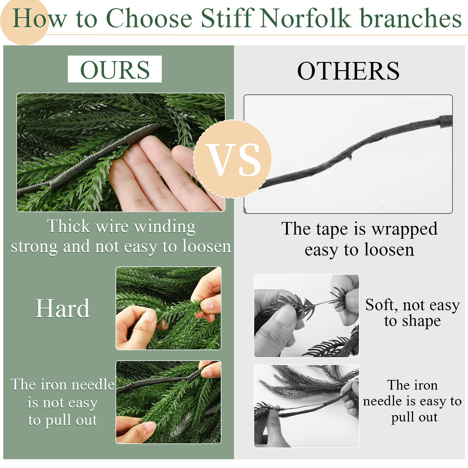 - UPGRADE MATERIAL: The real touch Norfolk branches made from high quality PVC, The stems of the greenery garland are fixed with thicken wire on both sides, Allow to twist into the shape you want flexibly, remaining fresh forever, never decaying.