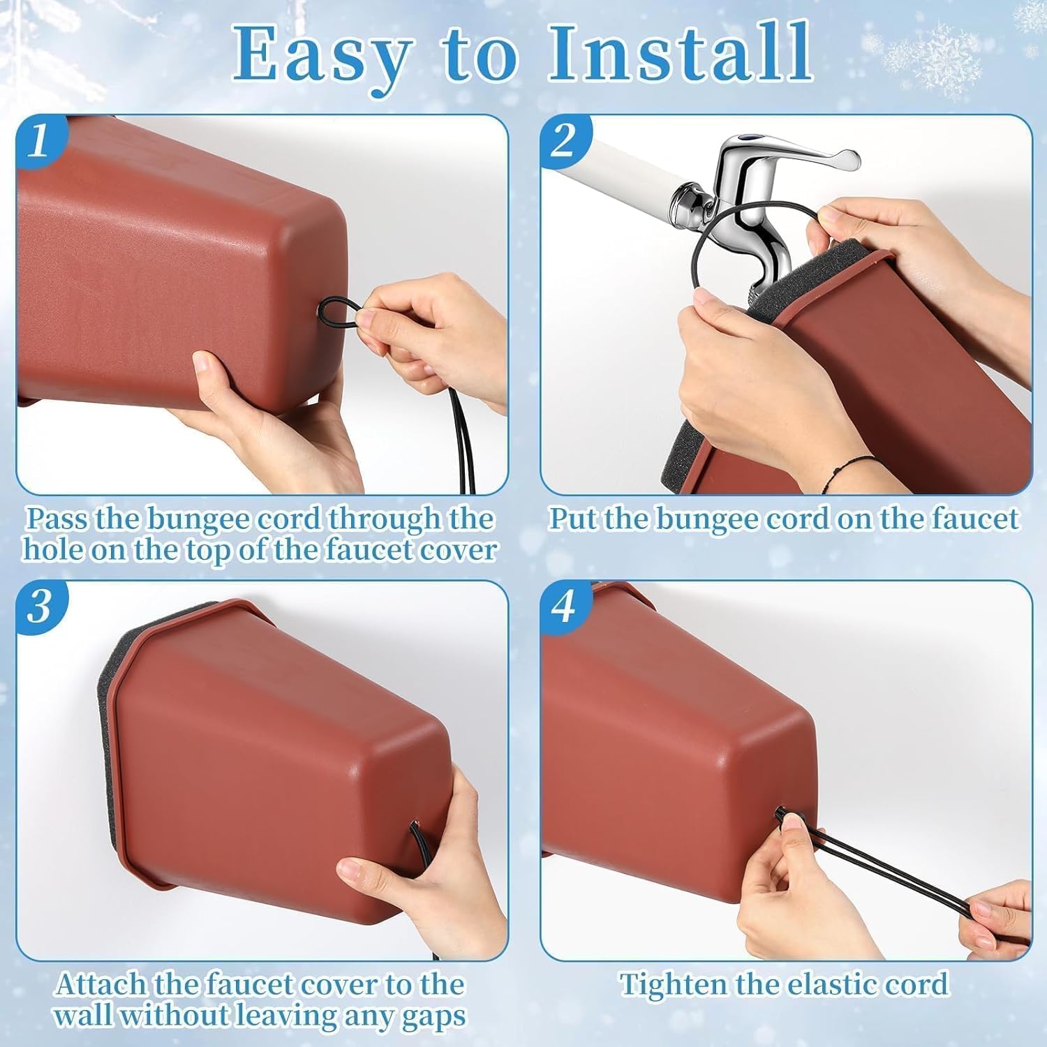 - Easy to Install: Convenience is key for these large hose bib covers for winter. These outdoor faucet freeze protectors are designed for easy installation without the need for additional tools. Simply wrap the internal circular cord around the faucet, secure the protective plastic freeze cap, and slide the lock onto the cord to fix it in place. These simple steps can be completed in seconds.