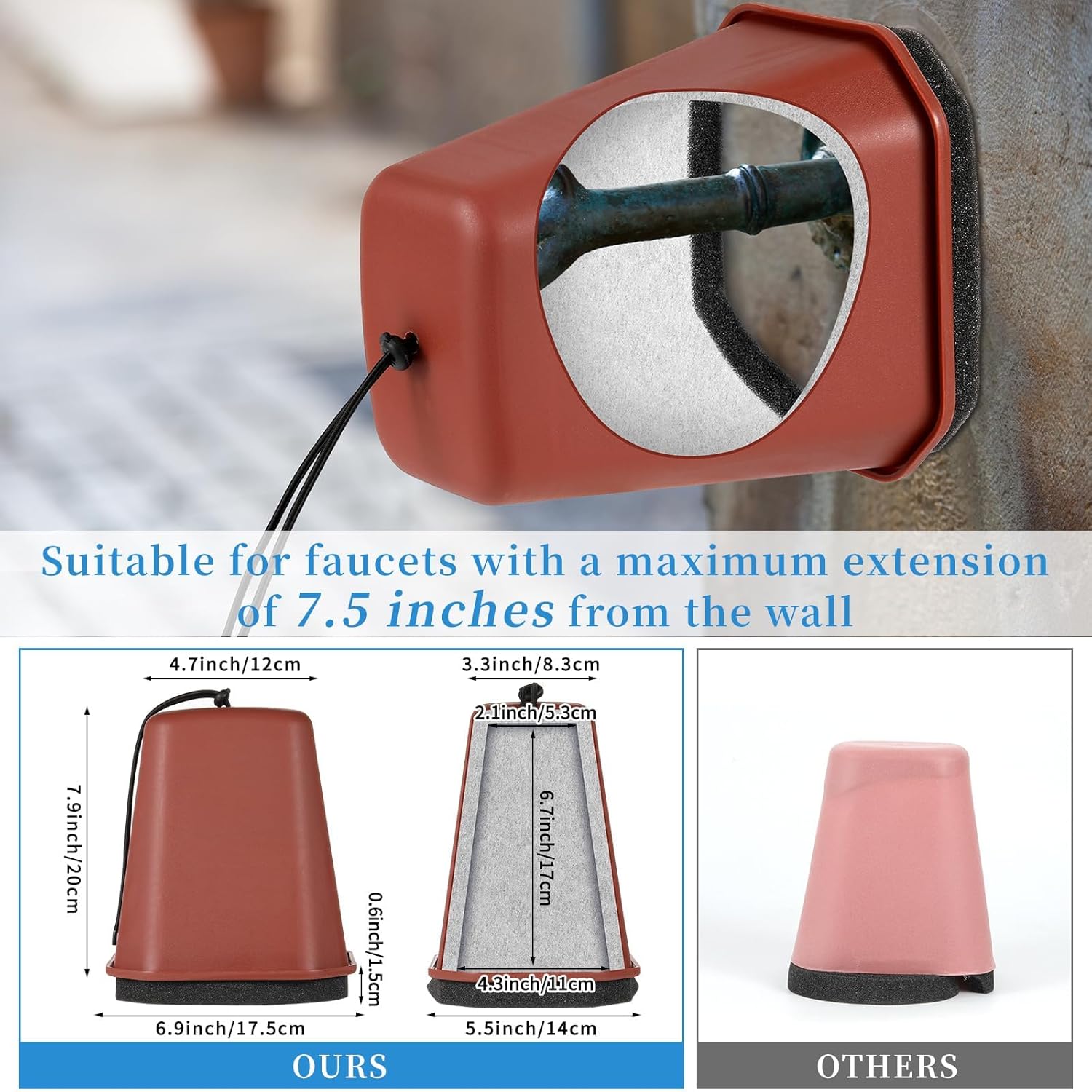 - Large Faucet Cover: You will get 4 pack large outdoor faucet cover with a size of 8.5 x 7 x 5.5 inches. The large size allows them to fit various faucets, even if your water faucet is far from the wall.