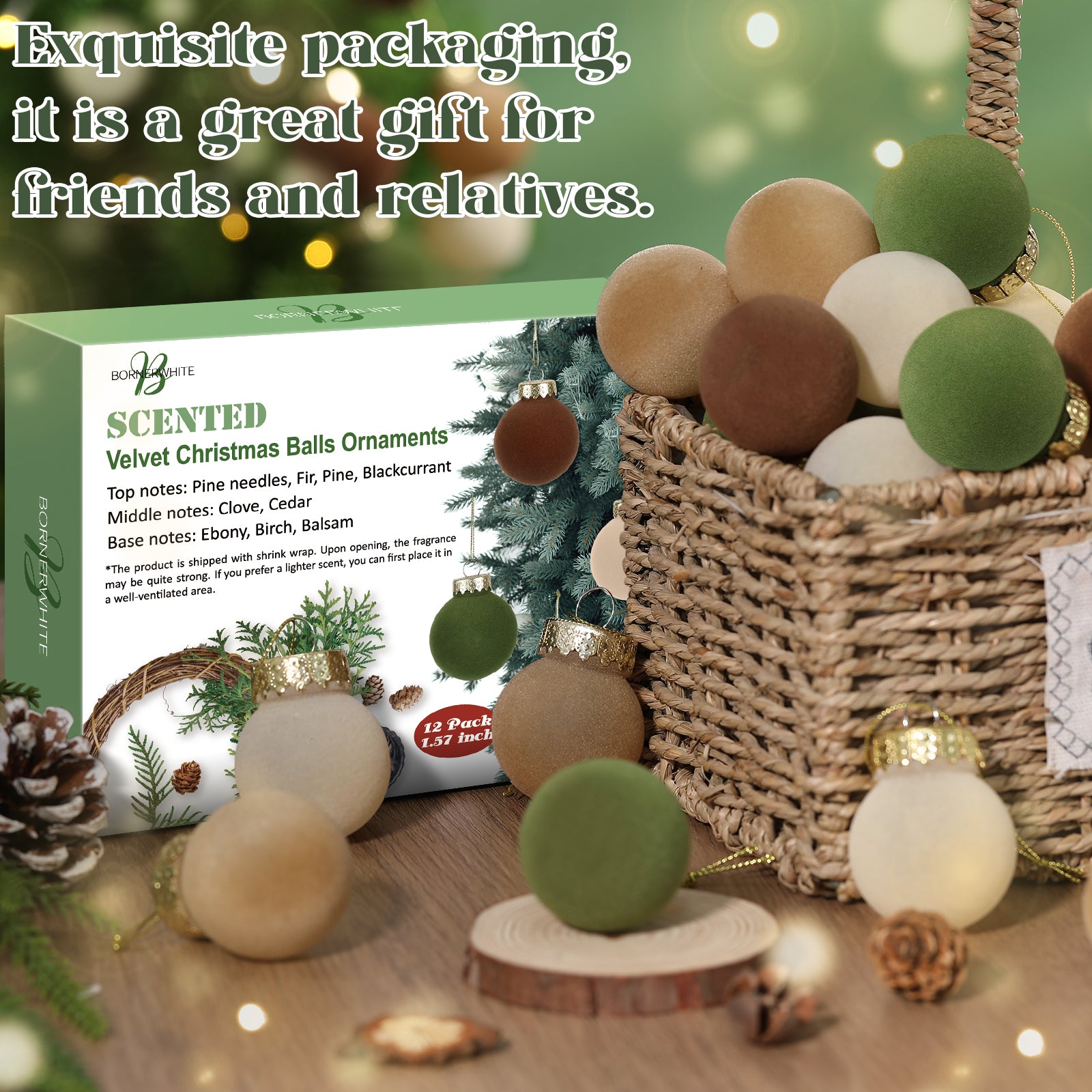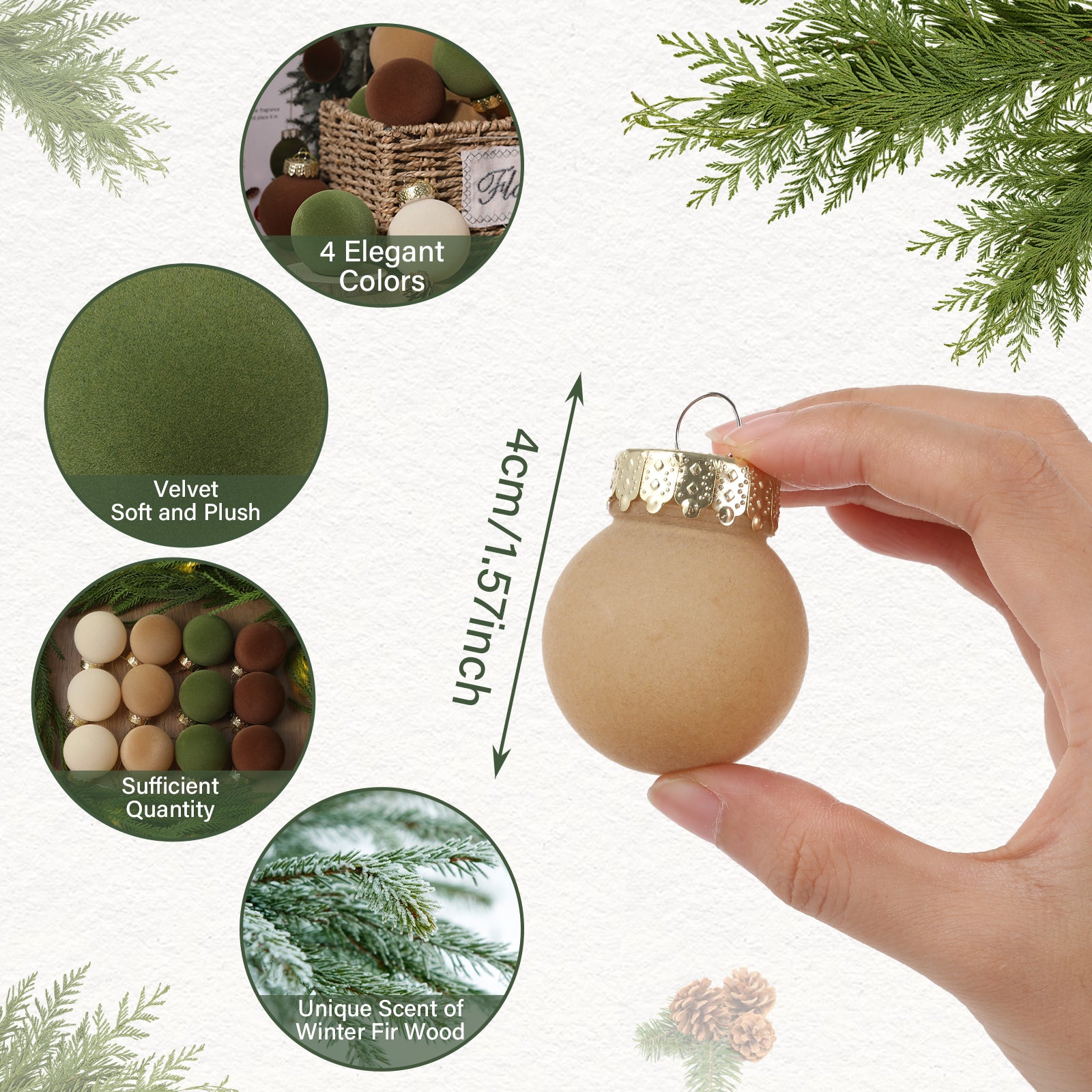 - Scented velvet Christmas ornaments: Immerse yourself in the festive spirit with our unique velvet Christmas ball ornaments infused with the scent of winter fir wood, reminiscent of a winter wonderland. Enjoy the charming aroma all season long while adding a touch of elegance to your Xmas holiday decoration. Reliable packaging protection prevents the flocked Christmas balls from being crushed and dented during transportation.