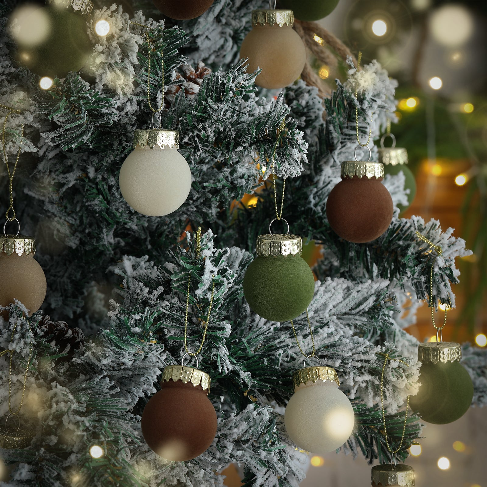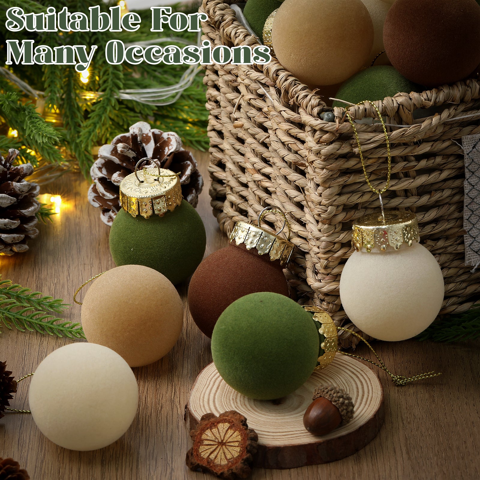 - Premium material: You’ll get a set of 12 velvet Christmas tree balls, each measuring 1.57'', in 4 elegant colors: Brown, Green, Coffee, and Beige. These festive Xmas decorative hanging balls are made from velvet and PVC, providing a soft and plush feel. Featuring a refined cap and exquisite craftsmanship, they add a charming touch to any Christmas theme or decoration style.